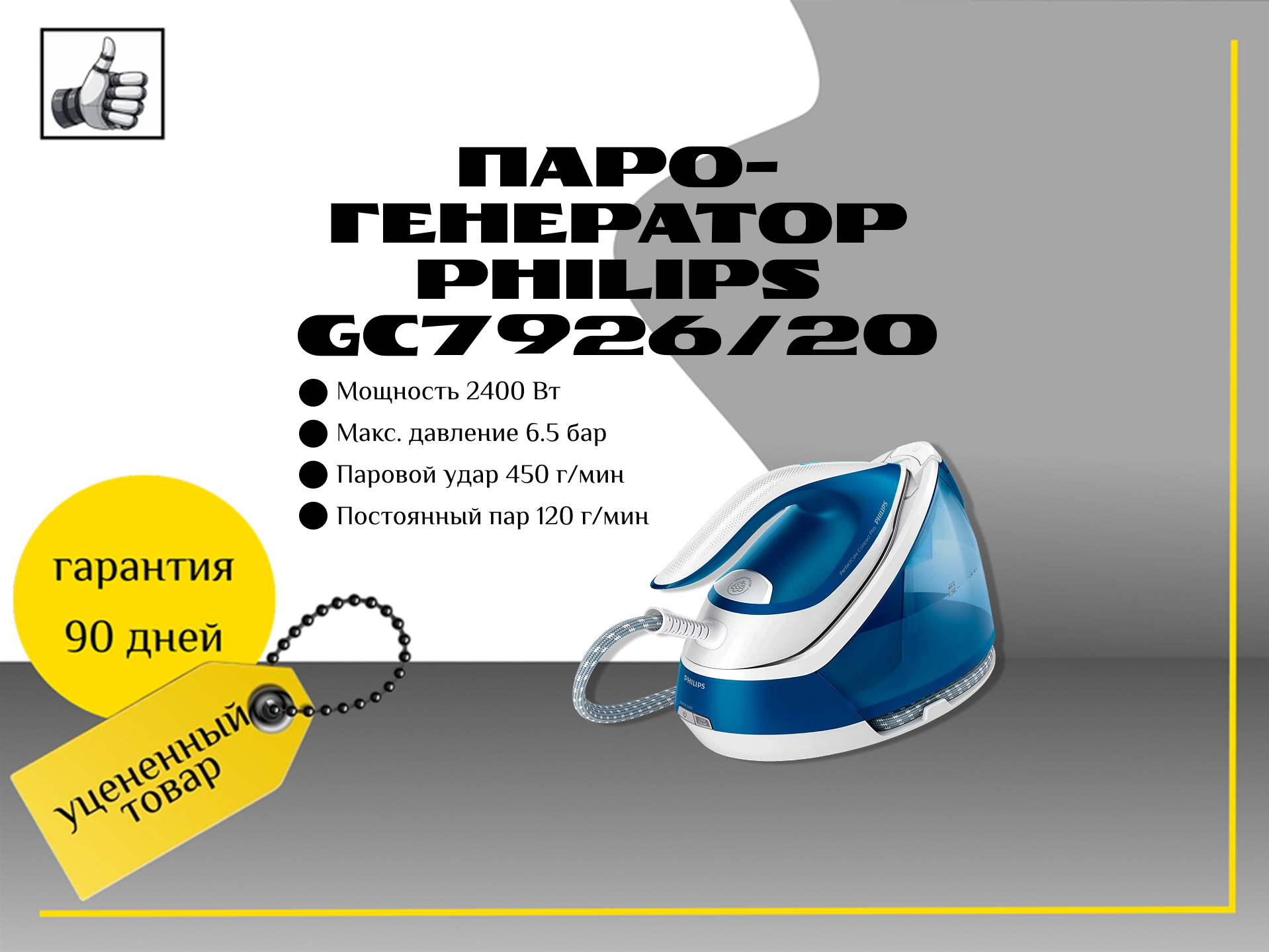 Philips GC7926/20 – парогенератор для легкого разглаживания стойких складок без риска прожечь ткань.