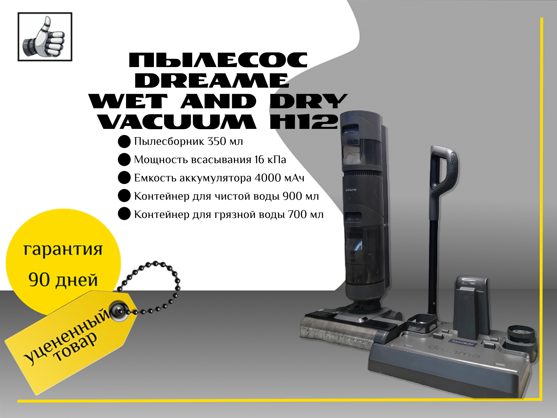 Пылесос Dreame Wet and Dry Vacuum H12 Black — моющая беспроводная модель. Основные особенности: