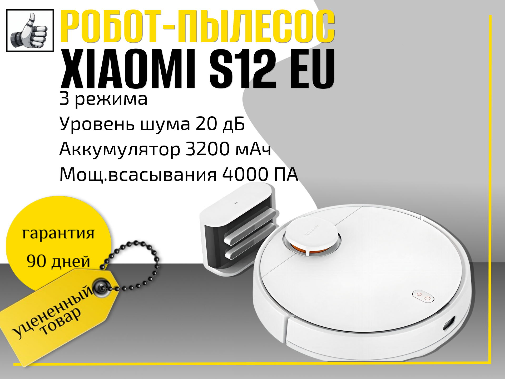 Xiaomi Robot Vacuum S12 EU — робот-пылесос белого цвета с тремя режимами работы: полностью автоматическая уборка, турборежим, уборка вдоль стены.