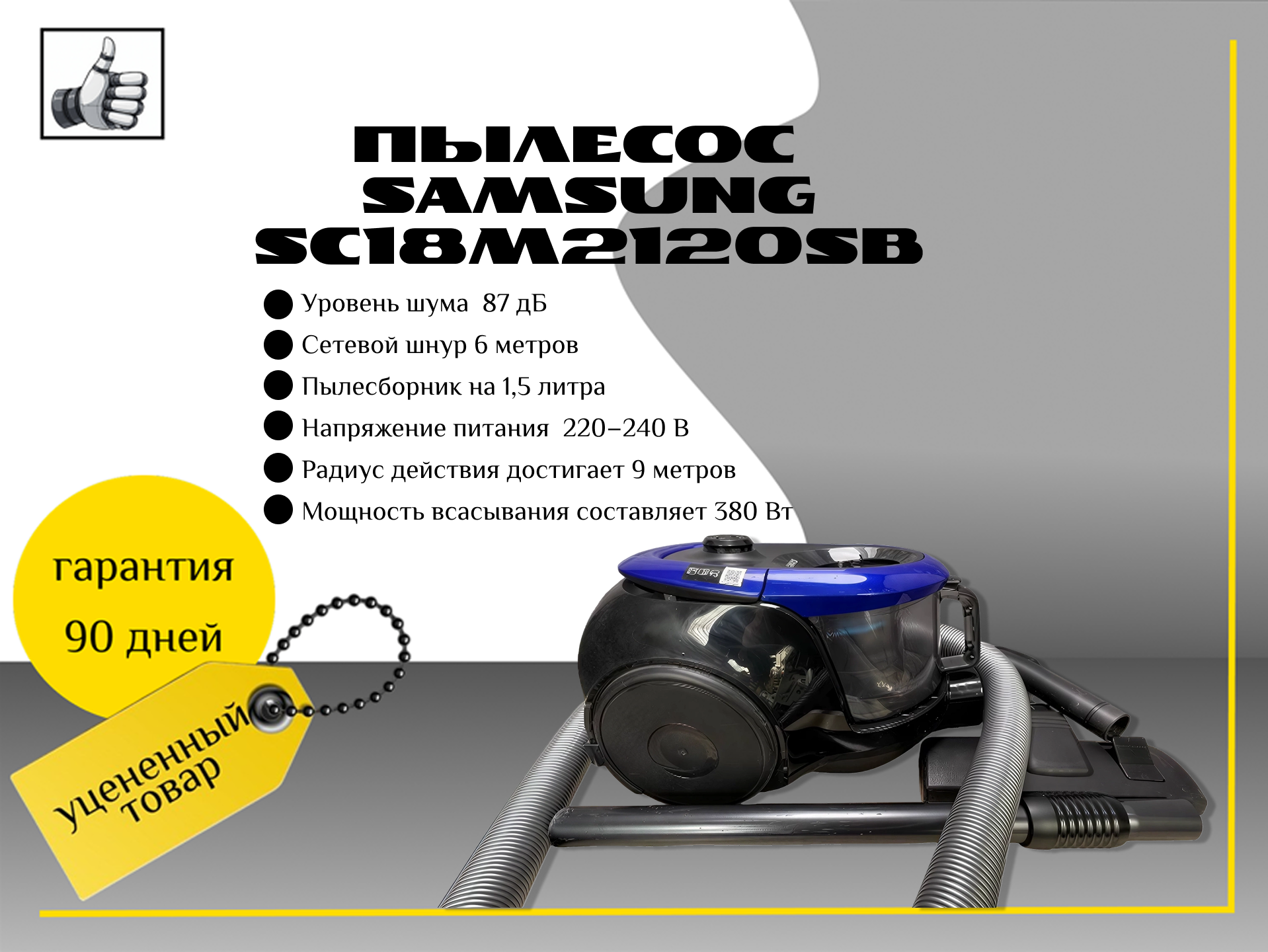 * Мощность всасывания — 380 Вт.