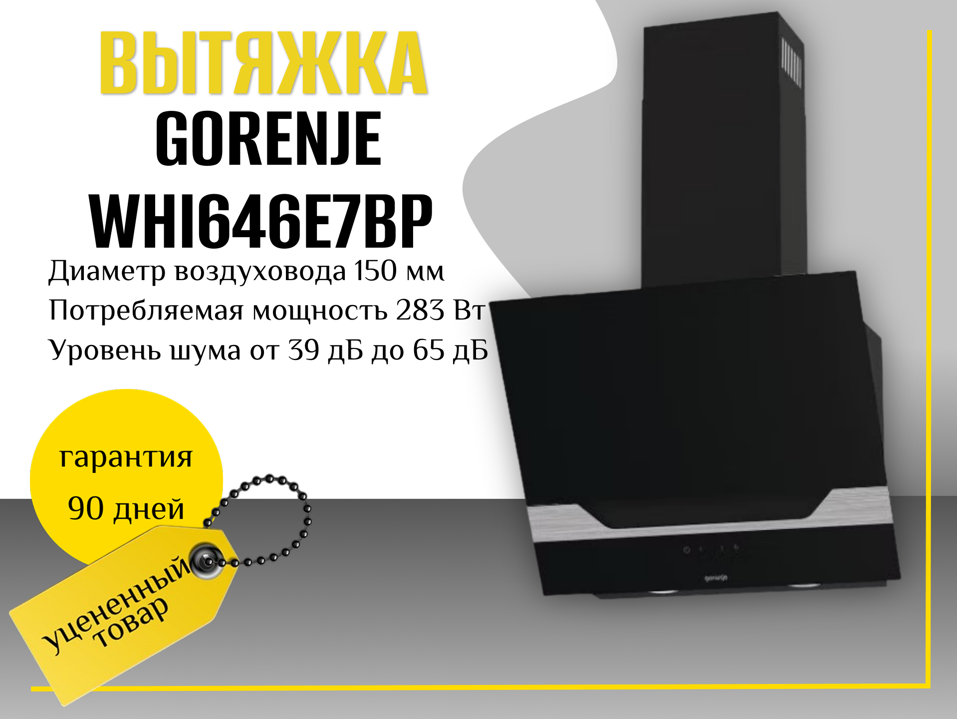 Вытяжка Gorenje WHI646E7BP — наклонная модель с передней панелью из чёрного стекла и нержавеющей стали. Подходит для помещений до 20 м².