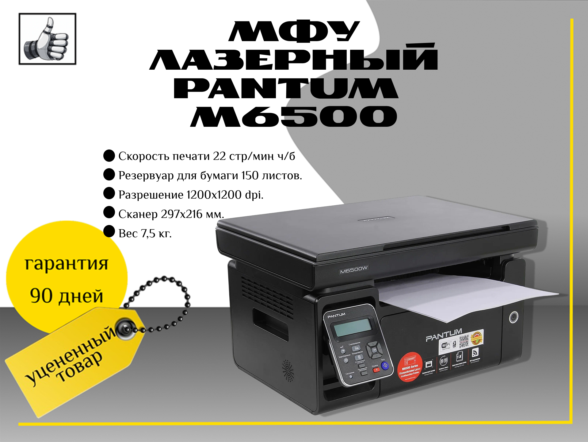 Pantum M6500 — многофункциональное лазерное устройство, совмещающее в себе работу принтера, сканера и ксерокса.