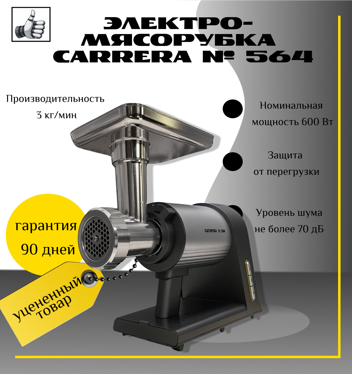 Электрическая мясорубка CARRERA №564 — это мощный инструмент для быстрого приготовления фарша. С двигателем на 2500 Вт и острым литым ножом из стали она легко справится с любыми видами мяса, от рыбы до говядины.