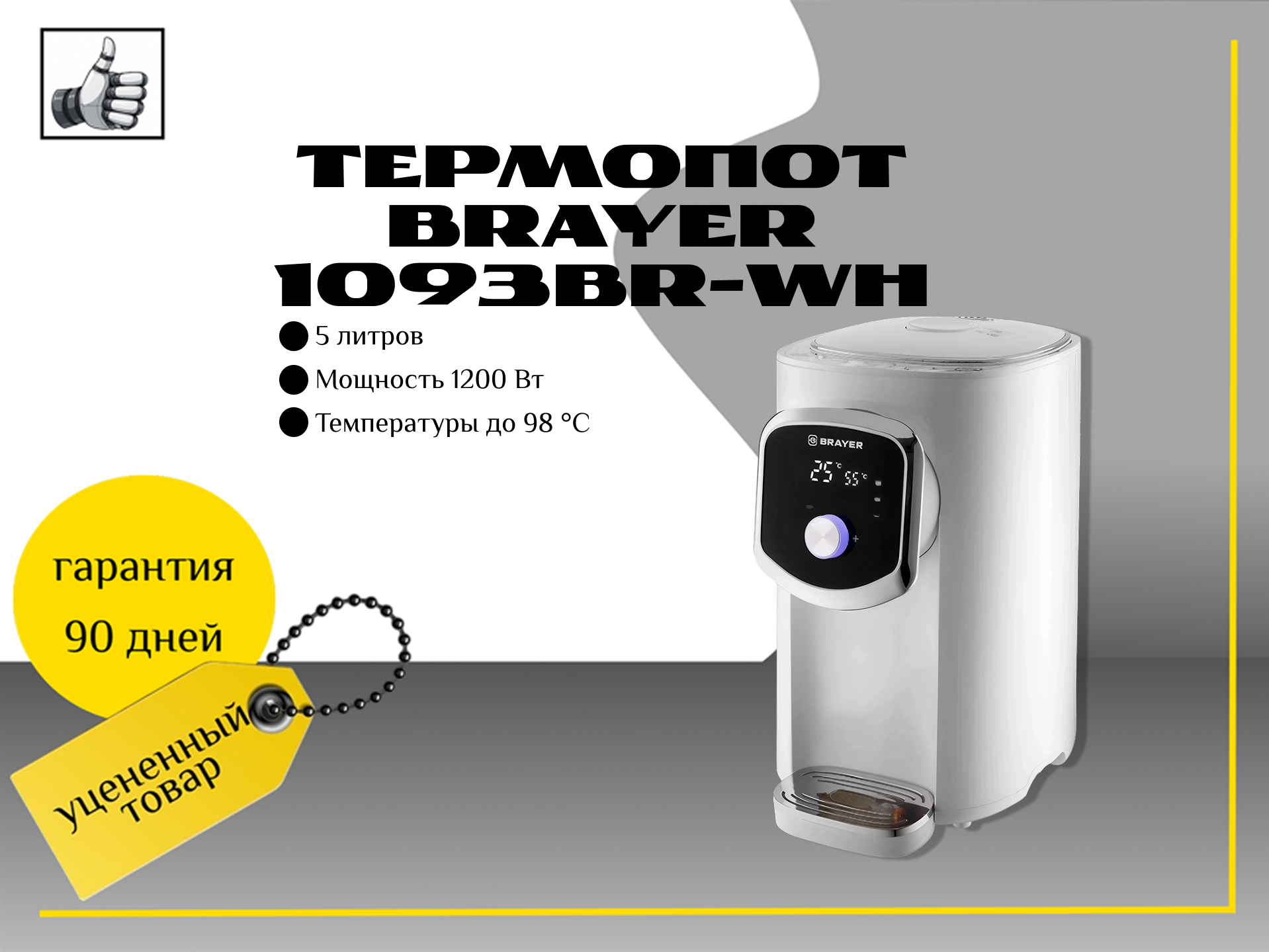 Термопот Brayer 1093BR-WH на 5 литров — идеальное решение для большой семьи или вечеринки. Он быстро кипятит воду и долго поддерживает её горячей.