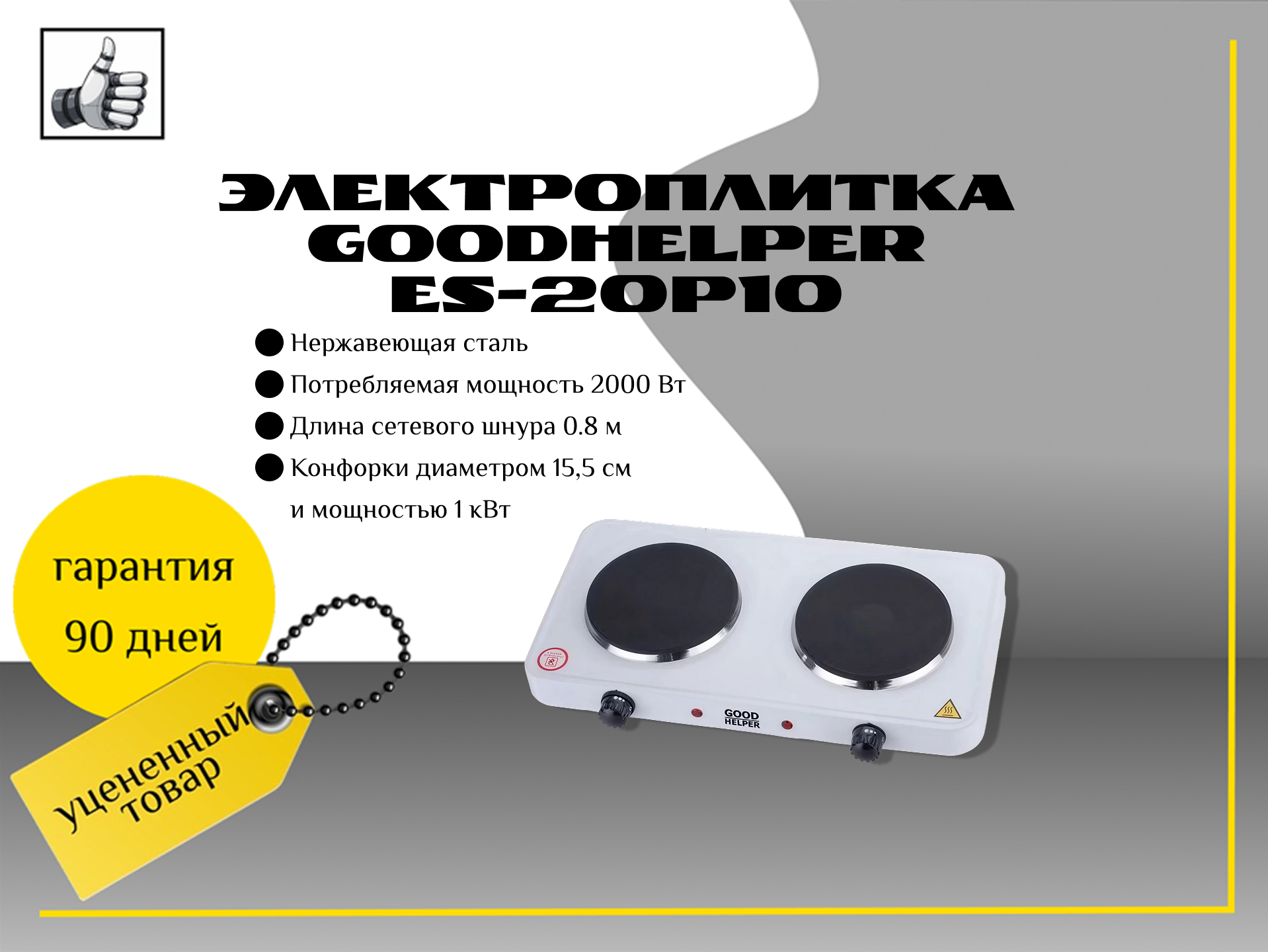 Goodhelper ES-20P10 — компактная электроплитка с двумя конфорками диаметром 15,5 см и мощностью 1 кВт.